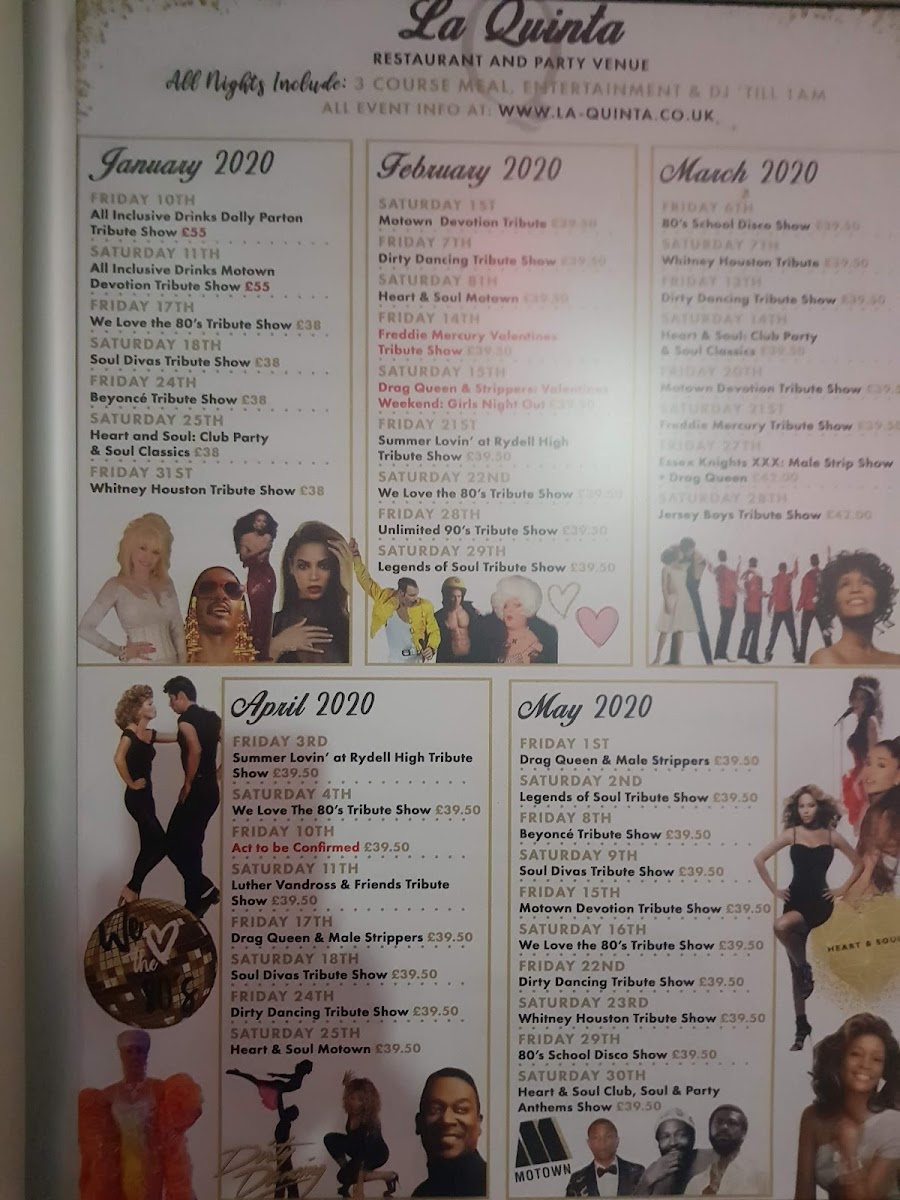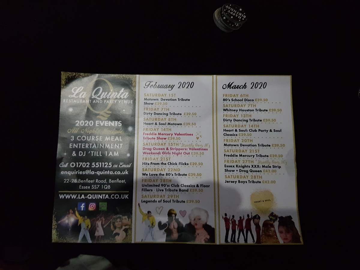 The menu at La Quinta Restaurant & Venue Hire in Benfleet impresses with a careful balance of classic comfort and refined flair. Starters such as the Terrine showcase a rich, savory depth that sets the tone for the meal, while lighter options like Sorbet provide a refreshing contrast, cleansing the palate with elegance. Mains like the Pulled Beef with Potatoe Gratin Veg and Gravy exemplify hearty, well-executed flavors, with tender beef perfectly complemented by creamy, golden gratin and seasonal vegetables. Desserts are equally compelling, with the Profiteroles standing out for their delicate pastry and indulgent filling, offering a sweet conclusion that is both satisfying and memorable. Overall, the menu demonstrates a thoughtful combination of textures and flavors, ensuring each dish earns its place while catering to both casual diners and those celebrating special occasions. The careful attention to presentation and the harmonious balance between rich, comforting dishes and lighter, refreshing options make the menu at La Quinta a cohesive, enjoyable dining experience.